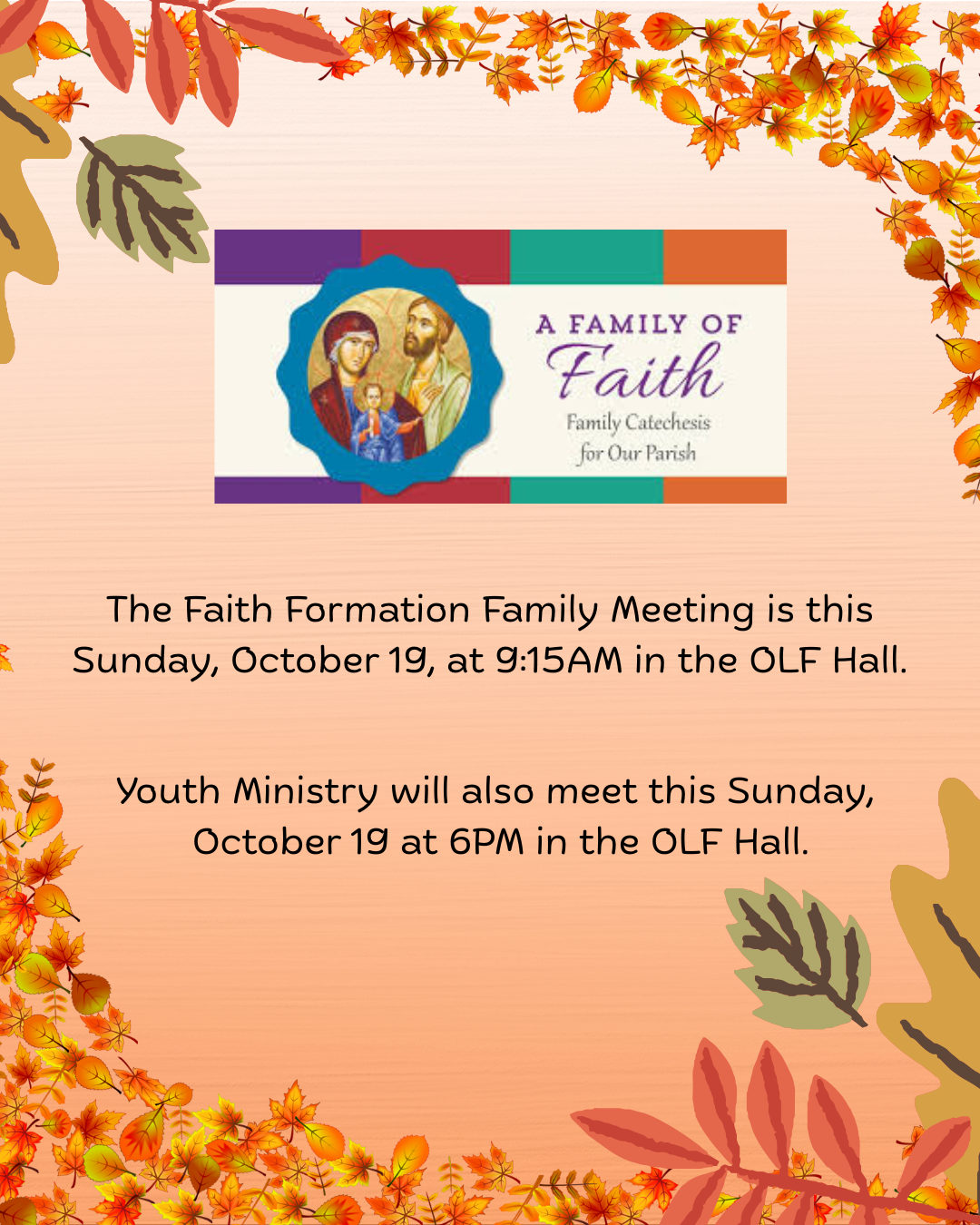 THIS MONDAY – At 6 PM, on Monday October 20th the Security Meeting will be in the Hall. This is our 3rd meeting. It is important that anyone in ministry have some basic commonsense knowledge of things to do in the event of a medical emergency or fire evacuation.