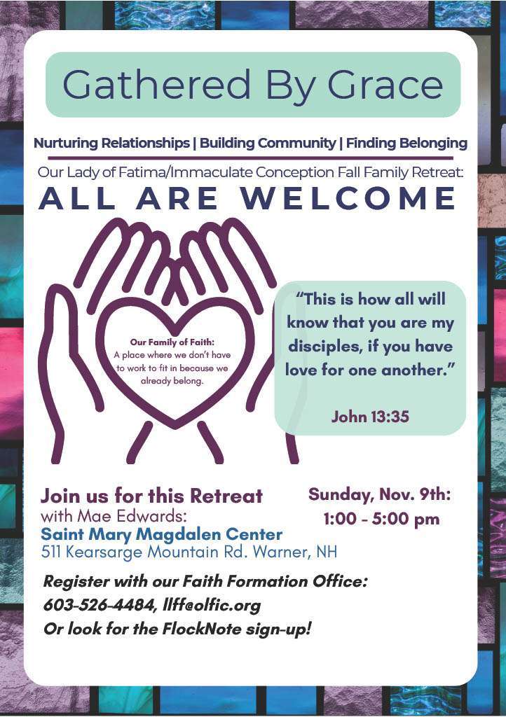 Mark down November 5th for an open question forum in Church Hall for Church policy matters, sacraments, annulments, and other pressing issues. Rev. Msgr Paul Bouchard, a member of the Marriage Tribunal and Vicar General of the Diocese and my classmate Rev. Bob Gorski who has done ministry for post abortion healing will join Deacon Greg and me for a casual setting for questions and to enjoy pizza.