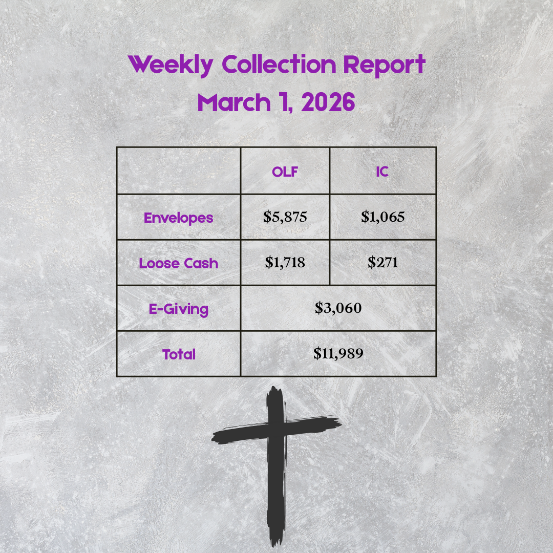 This Friday, Stations of the Cross were supposed to be at Immaculate Conception. With the current weather, the folks there are inclined to cancel. Since food prep is involved, it is too late for OLF to come up with food to move it. We will send out a separate communication later if an alternative such as Zoom is available. So consider Stations cancelled unless you hear otherwise.